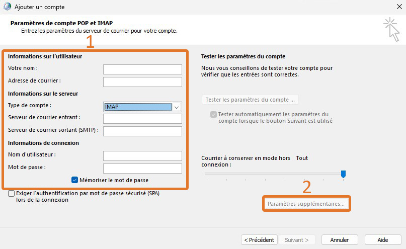 Vous pouvez maintenant suivre les étapes d’installation du compte dans votre logiciel OUTLOOK en mode IMAP.