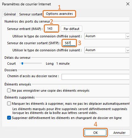 Attention, l’option IMAP peut nécessiter une augmentation de la capacité de la boîte mail, si nécessaire contactez nous.