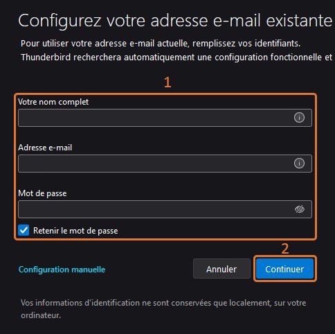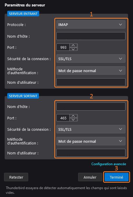 Vous pouvez maintenant suivre les étapes d’installation du compte dans votre logiciel THUNDERBIRD en mode IMAP.
